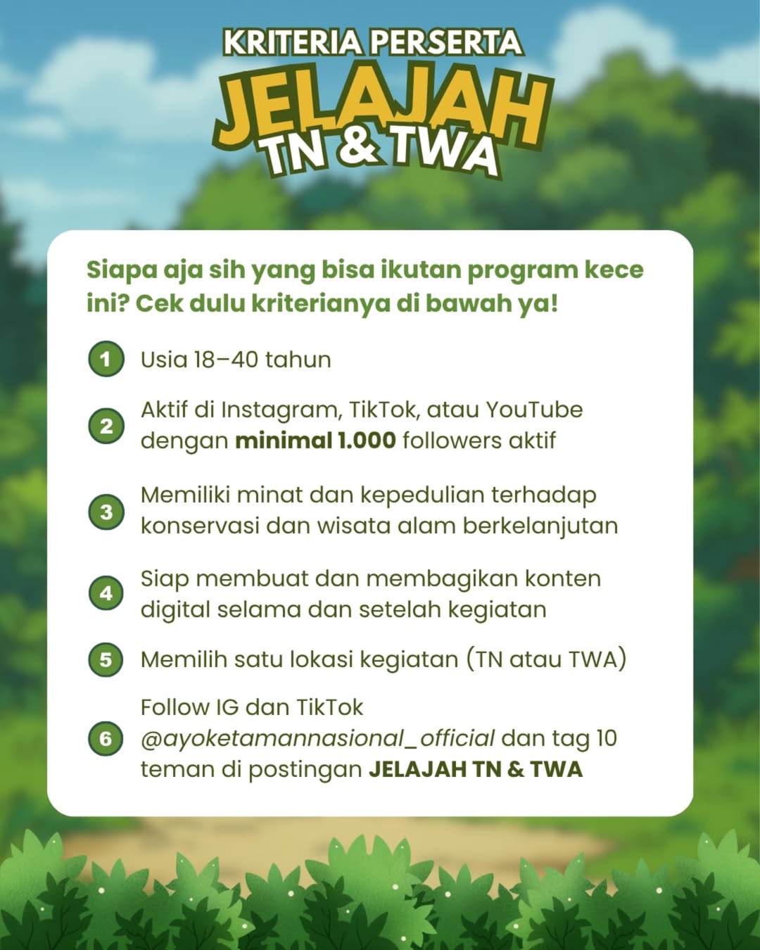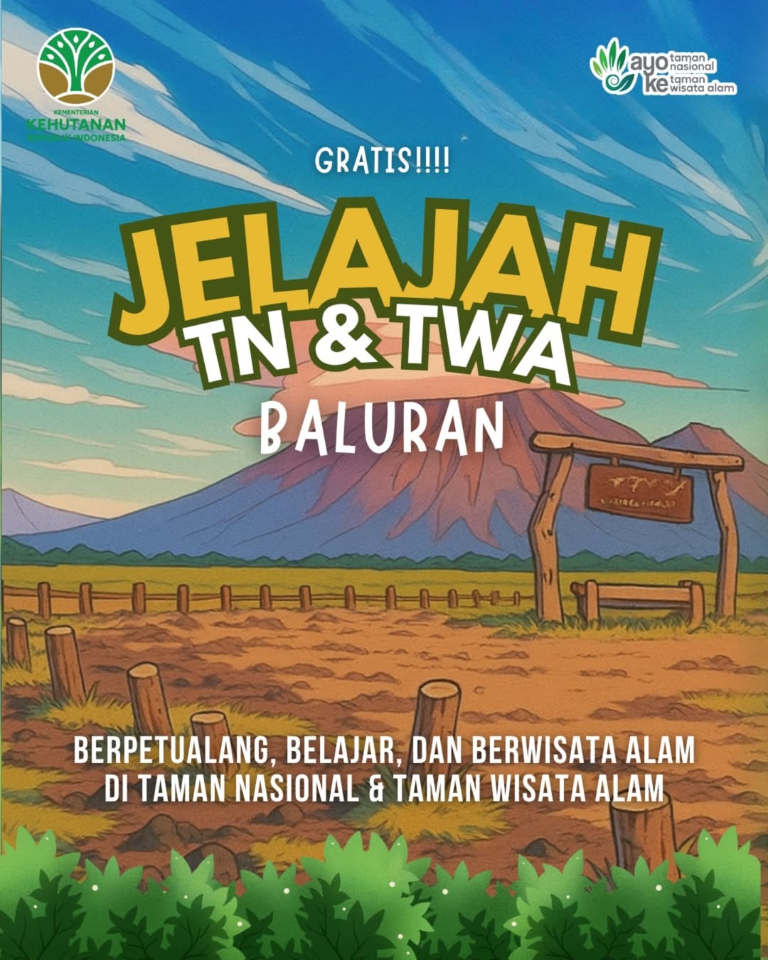 Hai sobat Baluran, bertepatan dengan Hari Konservasi Alam Nasional di tahun 2025, yuk ikuti MERAK (Merayakan Konservasi Alam) yang akan dilaksanakan pada :- Minggu, 10 Agustus 2025- Pukul 06.00 - 10.00 WIB- CFD depan Graha BNI (Jl. Sudirman-Thamrin)Ayo segera scan QR Code untuk melakukan pendaftaran, dapatkan merchandise dan bibit pohon selama kesempatan masih ada ya 😁Salam Konservasi 🙏 Read More