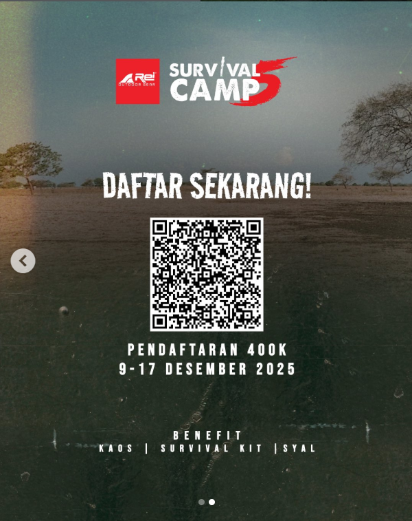 Jika Survival Camp sebelumnya fokus pada pembelajaran dan pengalaman bertahan hidup di alam, maka kali ini levelnya naik drastis.Dari seluruh peserta yang diseleksi, hanya 20 orang terpilih yang akan berangkat dan menghadapi rangkaian tantangan yang telah dirancang oleh para mentor profesional. Selama program berlangsung, mereka akan ditempa, diuji, dan ditantang untuk bertahan hingga titik akhir.... Read More